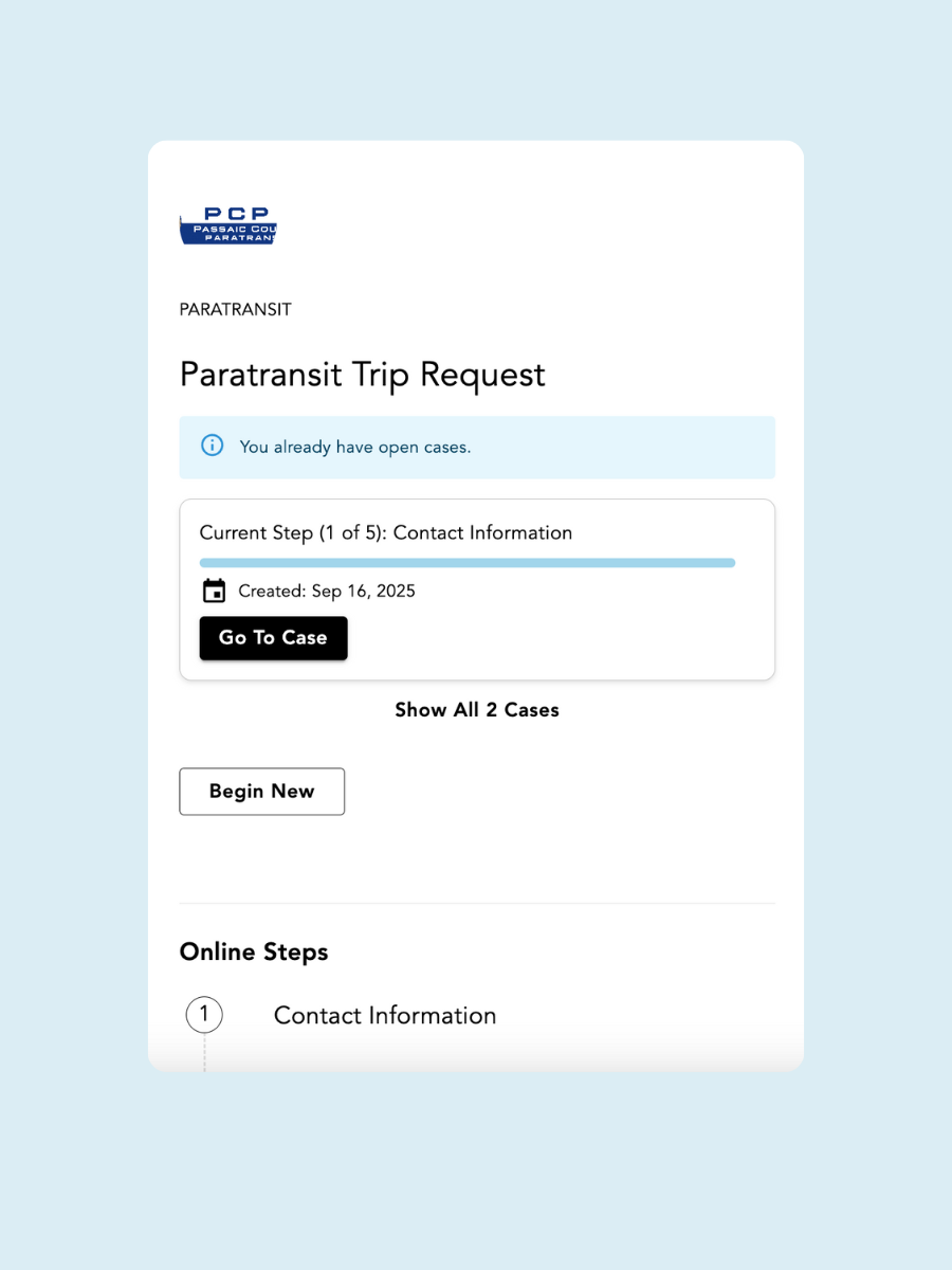 - Digital ride request forms that can be submitted by riders, family members, or care providers