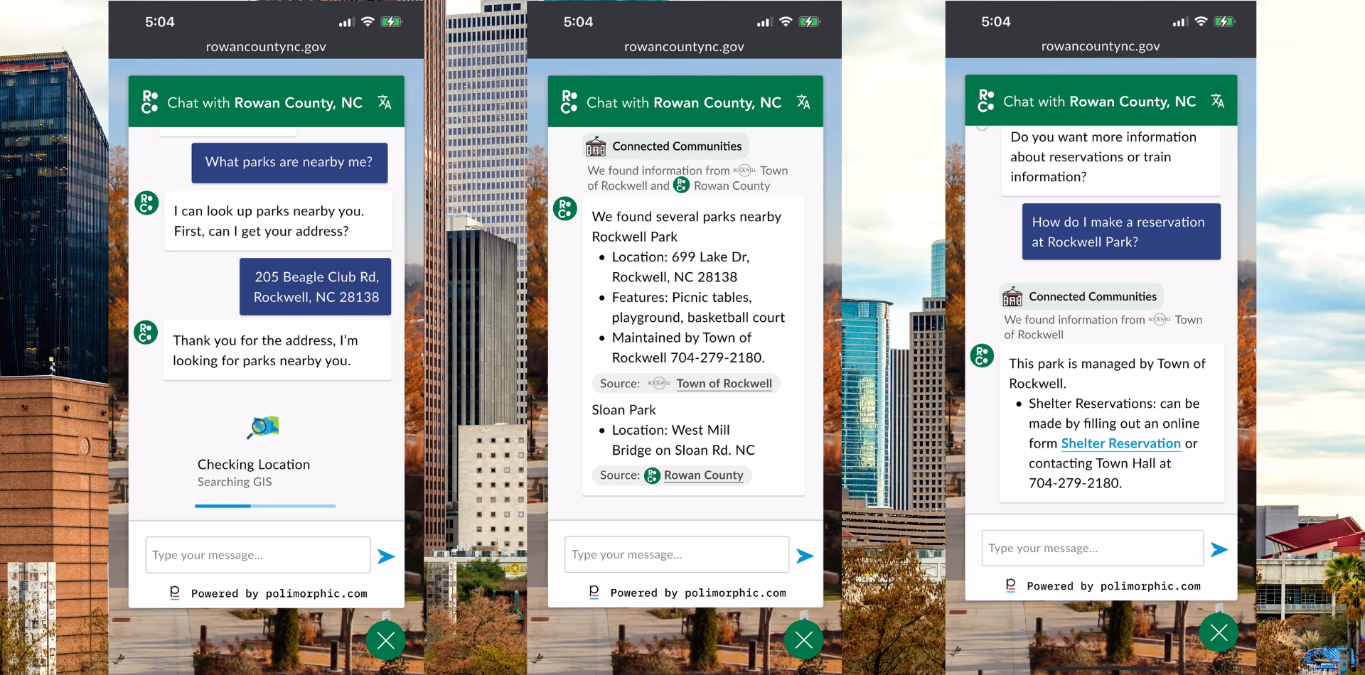 No more “let me look up that number” moments. With Polimorphic, residents can ask questions anywhere, on a city website, a county page, or through a voice line, and still get accurate answers. AI intelligently routes and responds so people don’t need to know which agency owns which service.